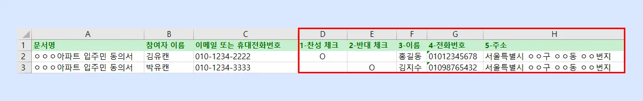 대량전송 계약의 서명자 입력값을 엑셀로 일괄 추출