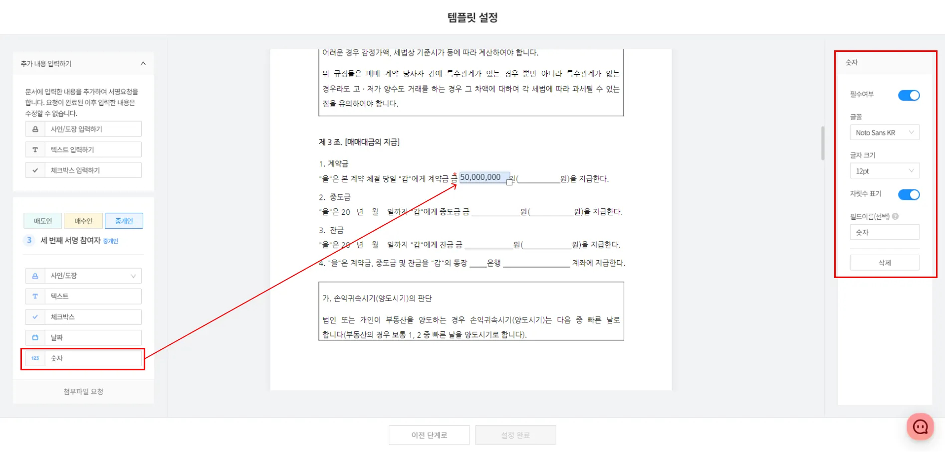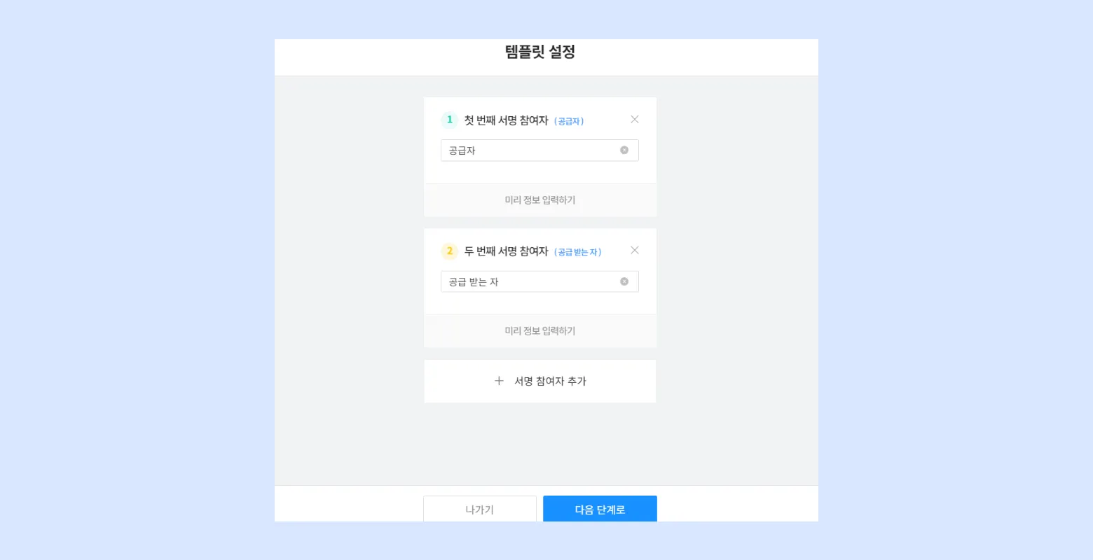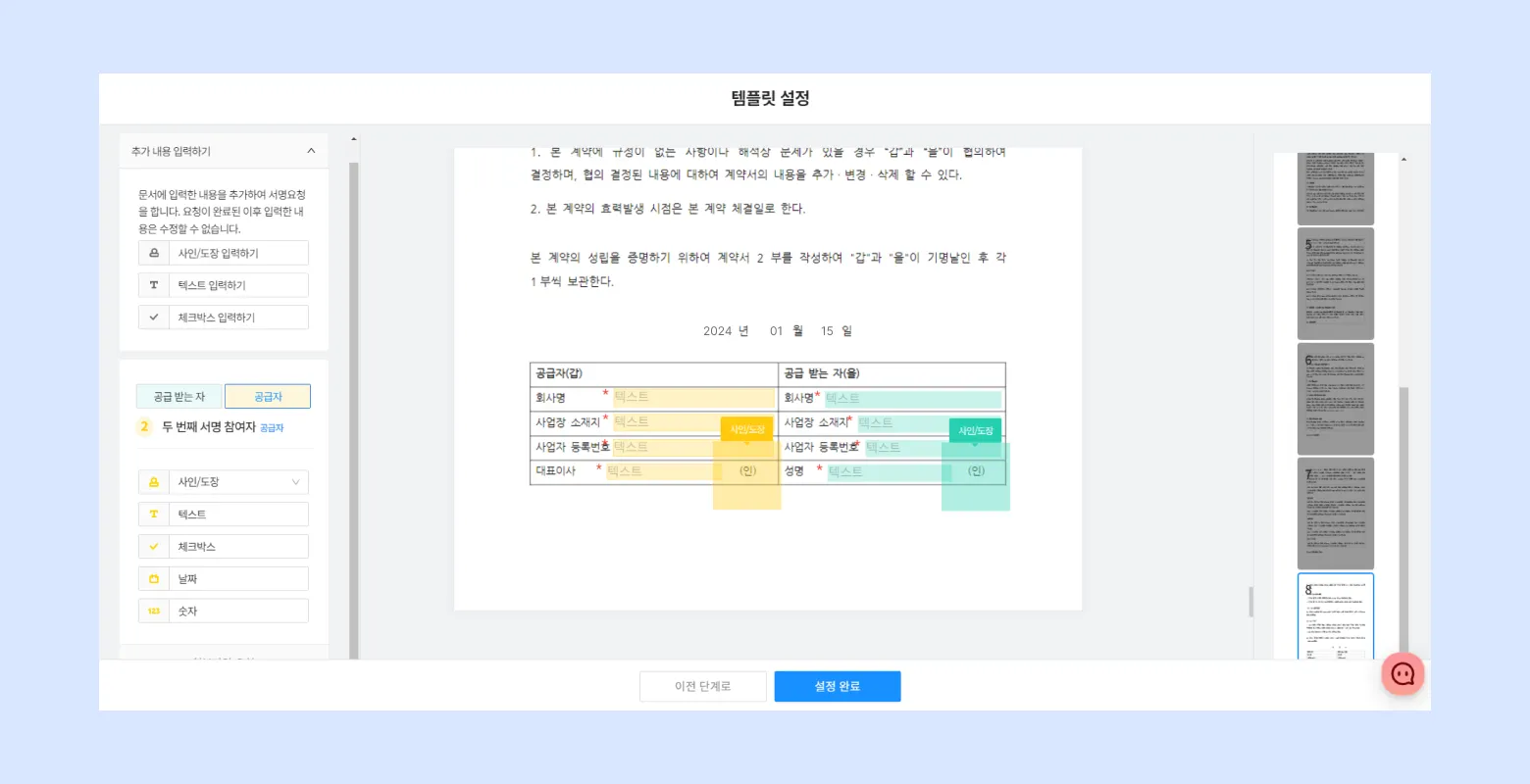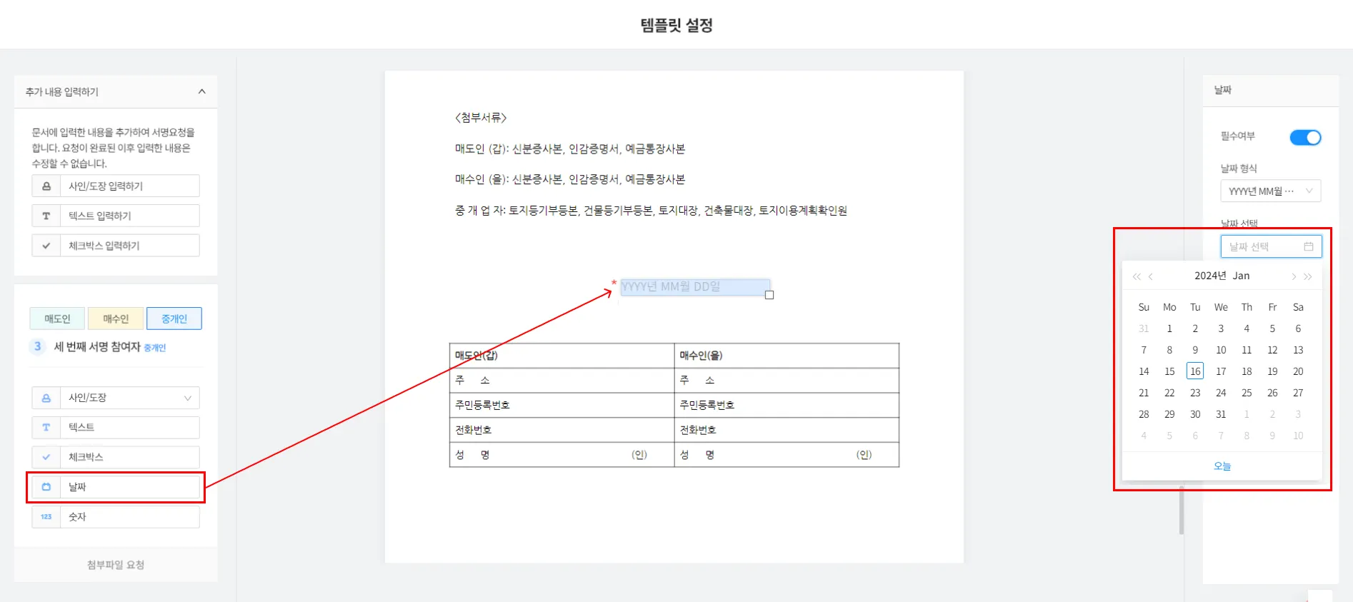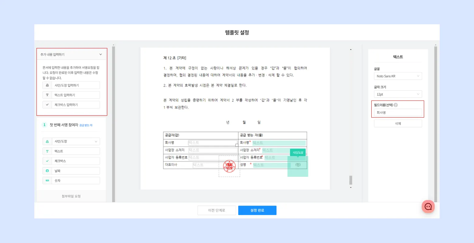 서명 참여자 입력항목을 알맞은 위치에 추가해 주세요.