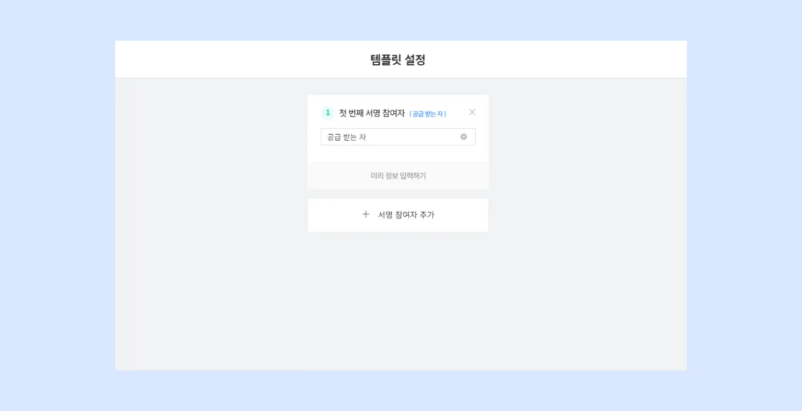 대량전송용 템플릿은 서명 참여자를 단 1명만 설정해야하고, 역할 정보만 입력되어 있어야 해요.